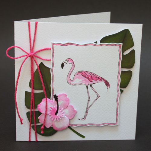 Het zijn hele gevarieerde kaarten geworden, waarbij we stansten en stempelden. Ook gebruikten we mijn nieuwe knipvellen met de tropische bladeren.